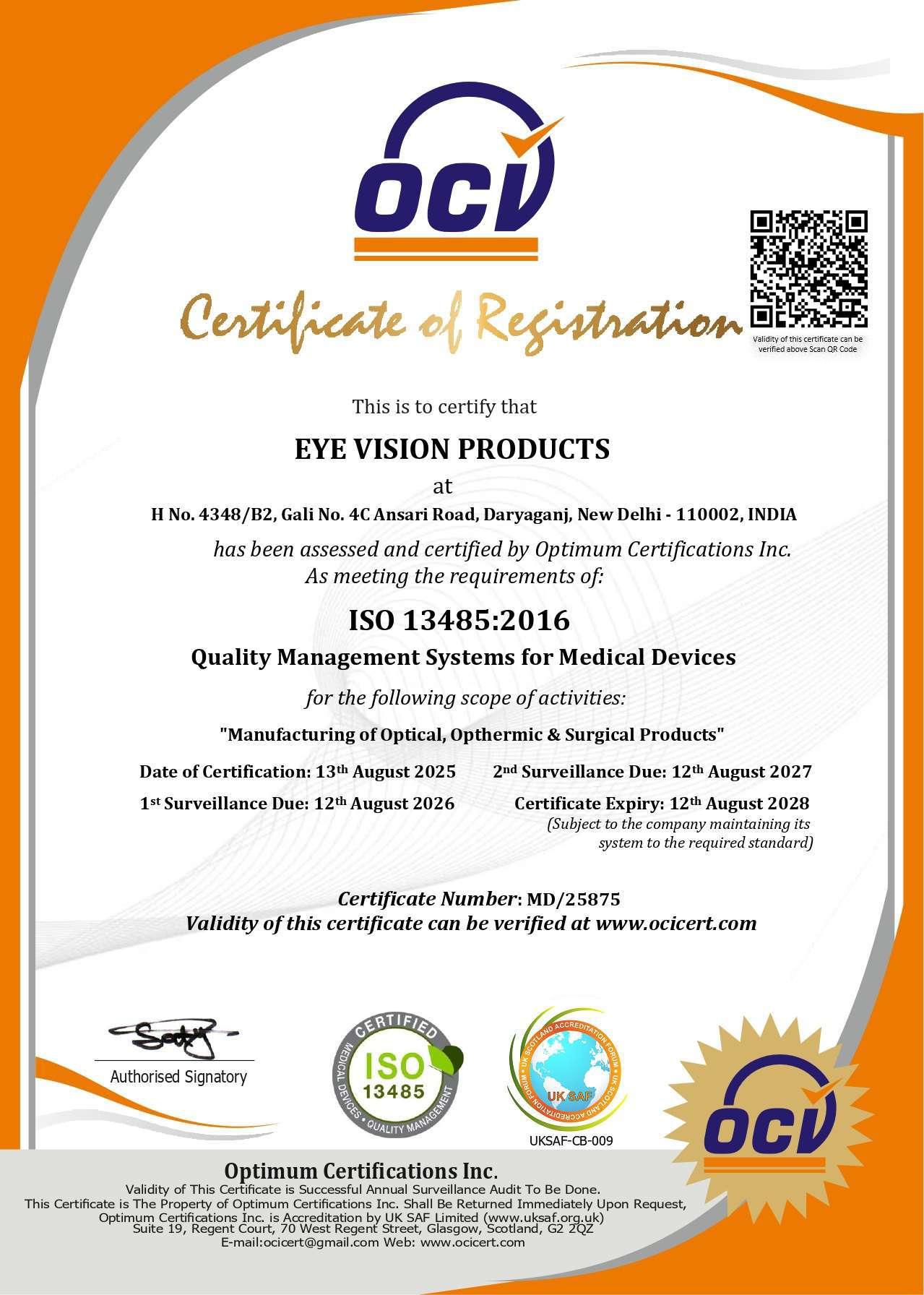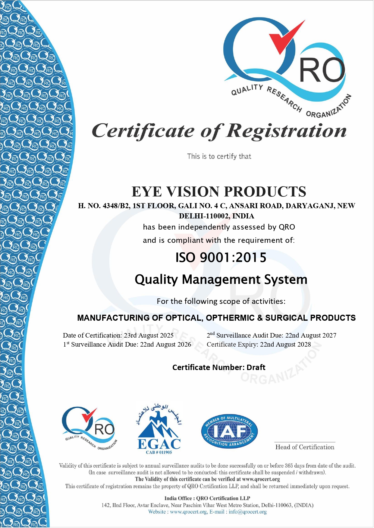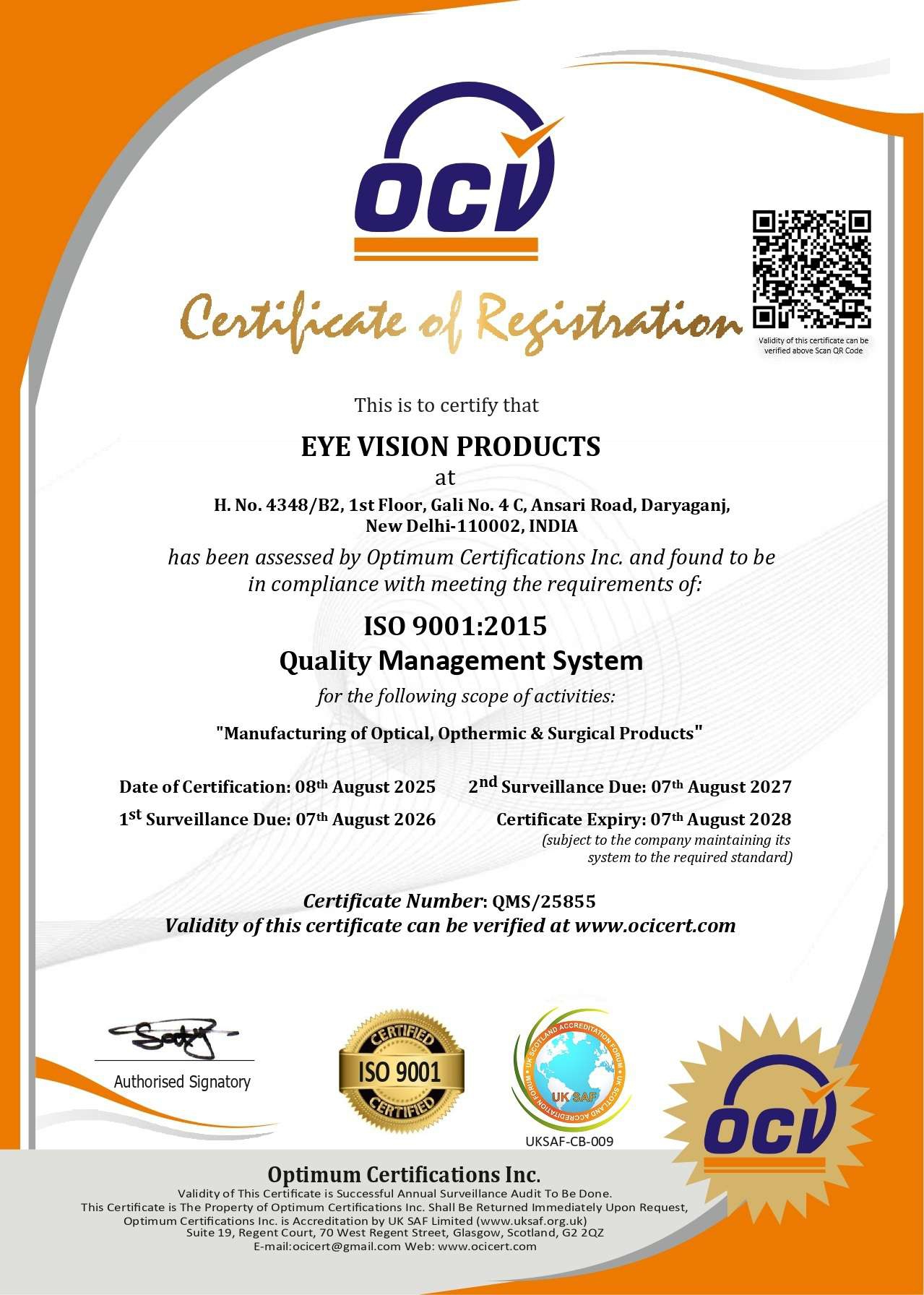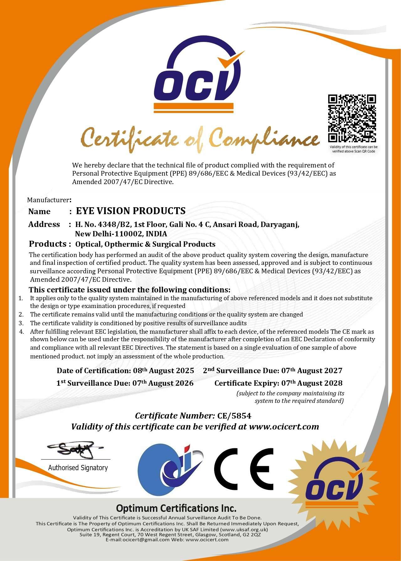 Eye Vision Products has proudly served the Indian market with high-quality optical, ophthalmic, and surgical instruments. Our key certifications—Registration Certificate, Importer-Exporter Code, and Certificate of Compliance—reflect our unwavering commitment to quality and reliability in the industry.